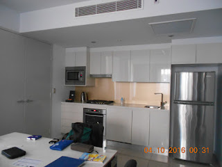 Apartment. Das ist eine kleine Wohnung mit Küche. In der Nähe ein Supermarkt, so dass wir den neuen