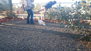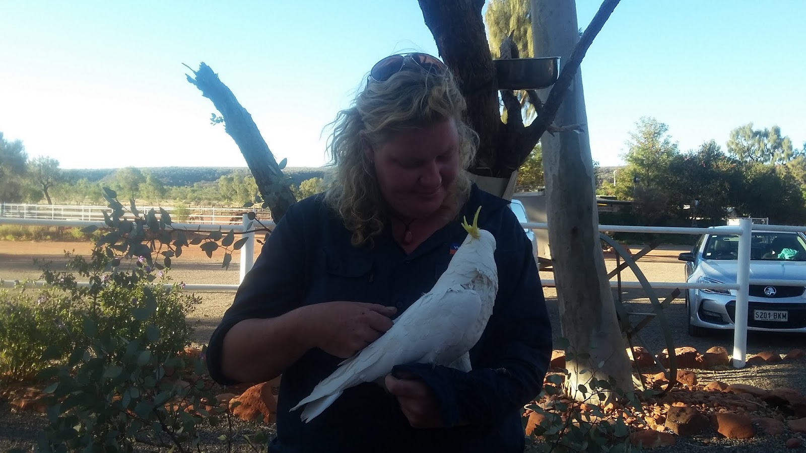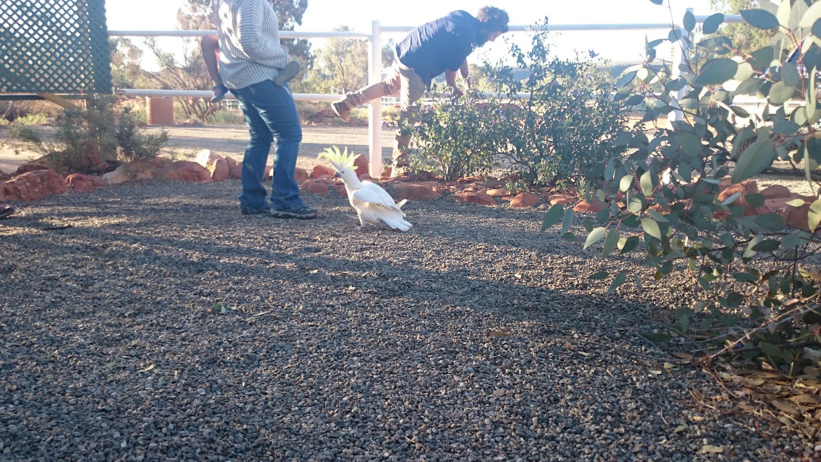 Am Nachmittag geht es wieder "on the road". Das nächste Ziel ist das Kings Canyon Resort, wo uns der zahme Kakadu Charlie schon erwartet.