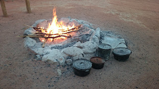 Kein Vergleich mit dem Sanitärtrakt gestern. Annabell kocht diesmal am offenen Feuer