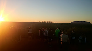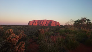 entfernten Hügel anzuschließen. Geboten wird : der Sonnenaufgang am Uluru.