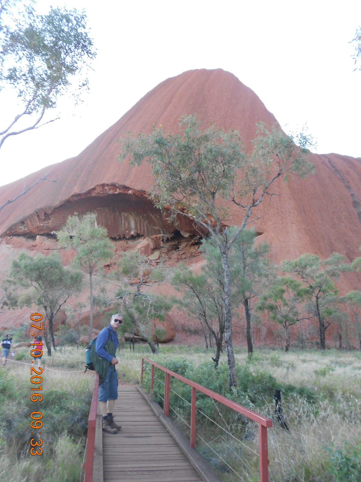 der es versucht hat. Es ist auch nicht ungefährlich. Wir machen von der Möglichkeit Gebrauch, den Uluru einmal komplett zu umrunden. Das ist bei der Hitze