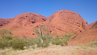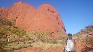 ohne Sekt. Lange können wir nicht verweilen, wir besteigen den Bus und fahren in den Kata Tjuta Nationalpark. Hier ist eine Wanderung vorgesehen, die man