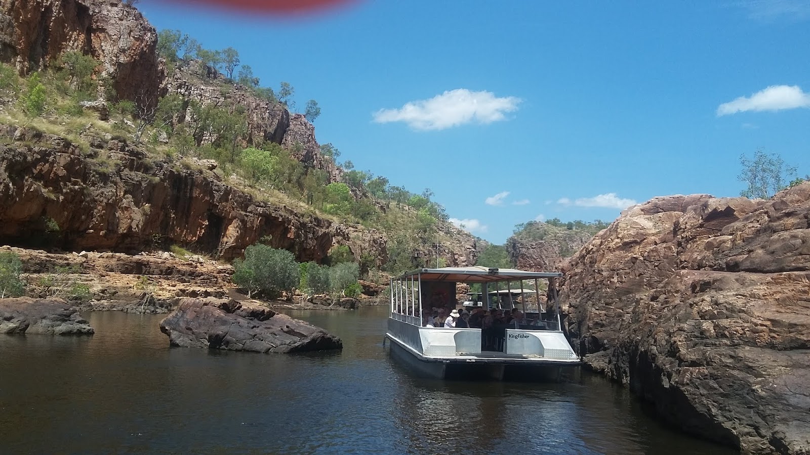 um 9 Uhr ein 3-stündiger Ausflug mit Bus, Schiff und zu Fuß in die Nitmiluk-Schlucht.