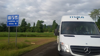 sogenannten Bushpool. Es regnet aber wieder und wir verzichten. Werden auch so nass, weil die Regenschirme vergessen haben.