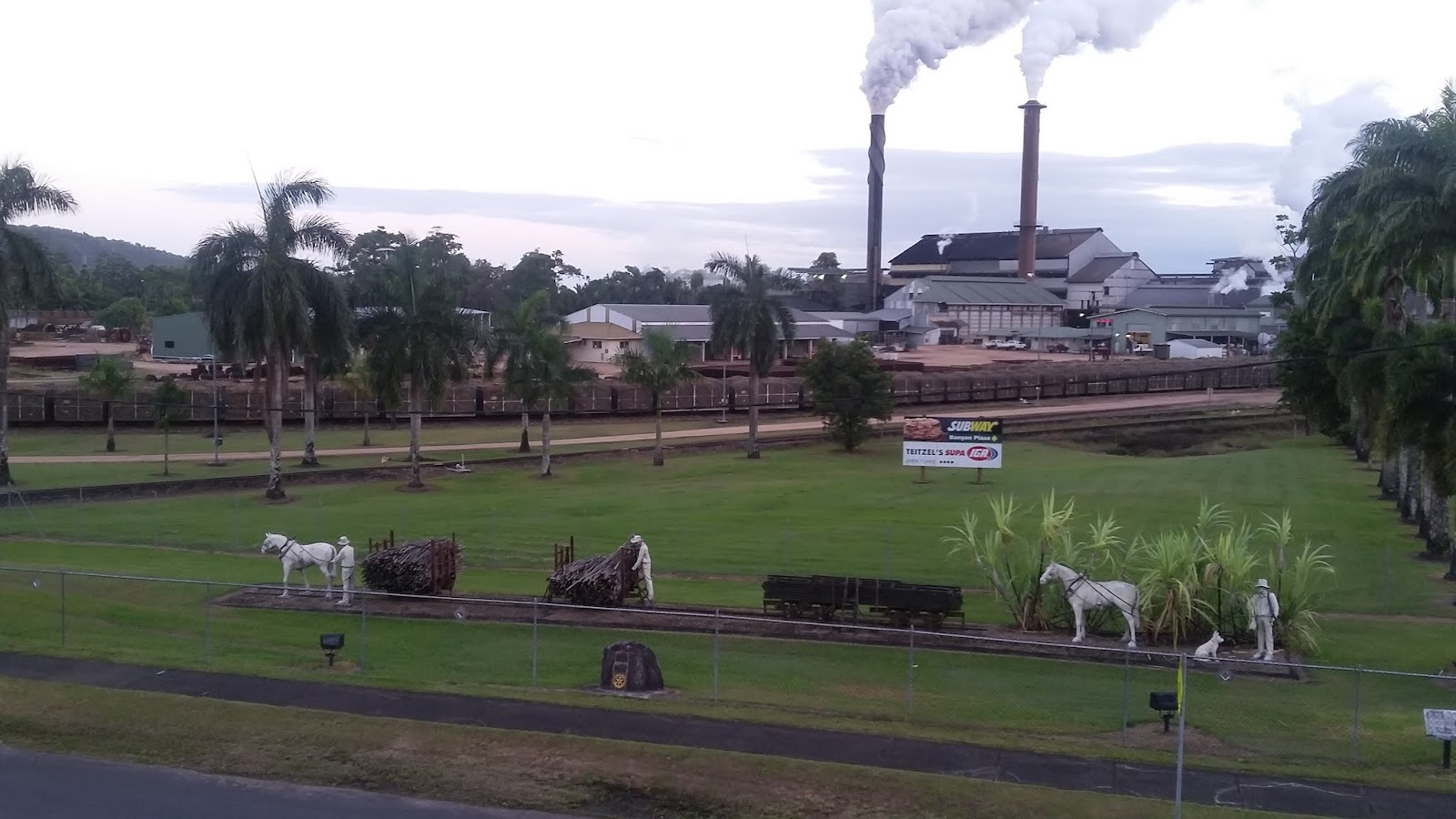 landen wir kurz vor dem Dunkelwerden auf einem völlig unromatischen Platz am Rande des Showgrounds von Tully direkt gegenüber der Zuckerfabrik.