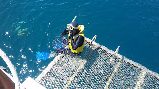 aus Melbourne hat auch einen Riffhai gefilmt und ist auf einer Schildkröte geritten. Er war auch von uns allen mit Abstand am längsten im Wasser.