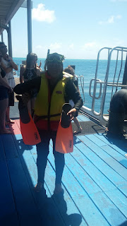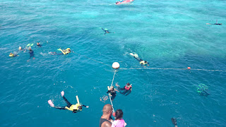 gingen zunächst in das Unterwasserobservatorium und bestiegen dann das Glasbodenboot, das dann eine halbe Stunde am Rande des Riffs entlangtuckerte und