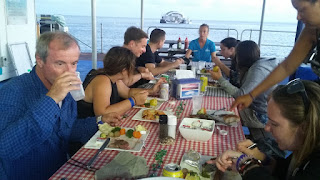 stärkten wir uns beim Lunch auf dem Schiff und wagten dann einen ersten Schnorchelgang.