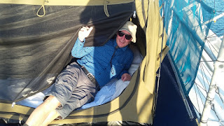 aber noch bis weit nach Mitternacht Lärm. Ausserdem war der Wind mächtig stark, gut dass die Zelte an der Reling festgebunden waren.