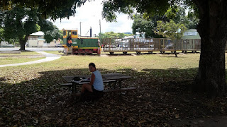 Empfangsbedingungen in Mirani Station, um das Notwendige zu erledigen. Hier können wir auch einen der Zuckerrohrexpresse fotografieren.