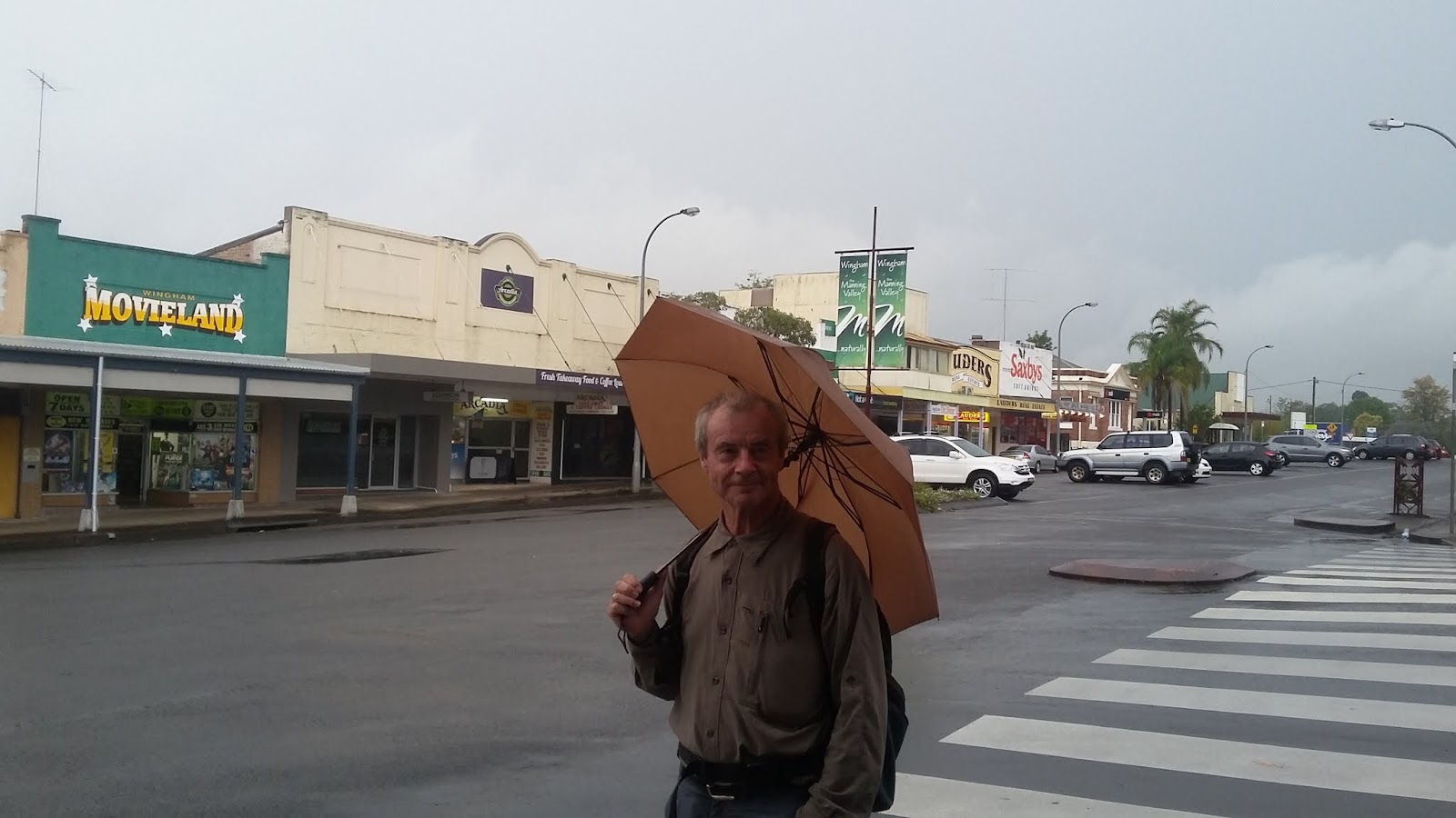 sind Gewitter aufgezogen und als wir unseren Übernachtungsplatz in Wingham erreichen, müssen wir unsere Jacken suchen und die Schirme hervorholen.
