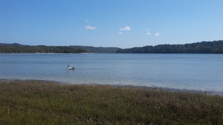 nördlich von Newcastle. Hier bescherrschen z. B. Pelikane die Szene.