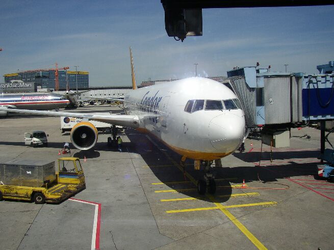 Solchen Fragen können wir ganz entspannt nachgehen, denn wir sind schon eine Stunde vor Abflug im Warteraum. Obwohl alle CONDOR-Flüge an den gleichen Schaltern abgefertigt wurden, ging es doch relativ flott. Auch die Sicherheitskontrollen hielten sich im Rahmen, kein Vergleich mit denen beim Flug in die USA.