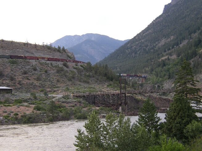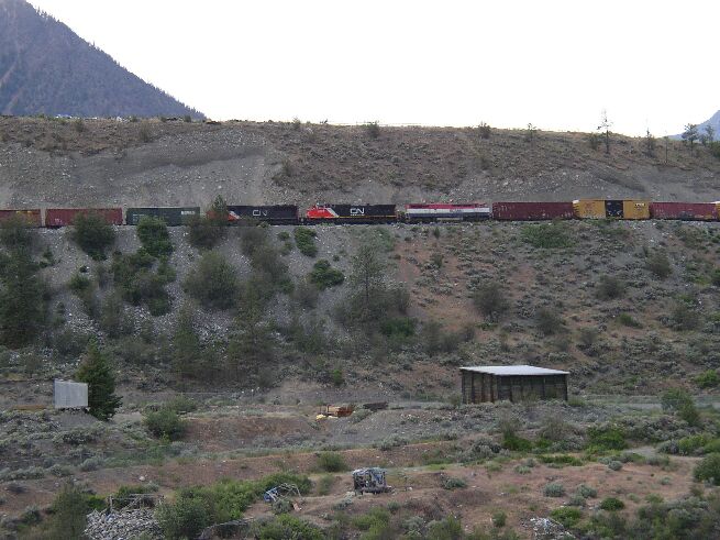 lädt zur Mittagsrast ein. Als wir aussteigen sind wir nun auch nicht mehr besonders erstaunt, dass es schön warm ist. Da verweilt man gern ein wenig länger. Interessant ist, dass es hier an beiden Längsufern ein Eisenbahngleis gibt. Tatsächlich haben beide großen Bahngesellschaften, C.P.R und C.N.R hier ihre eigenen Schienen verlegt.