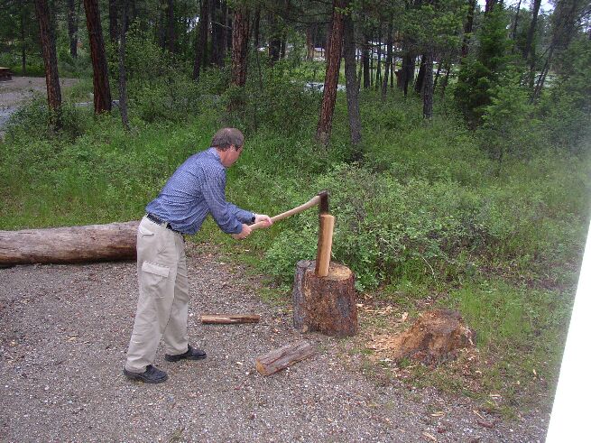 mit einer geborgten Axt. Dann haben wir noch genügend Zeit für einen Spaziergang um den Wasa Lake und durch den Ort Wasa. Schwedische Namen an den Türen finden wir allerdings kaum, dafür umsomehr deutsche und holländische.