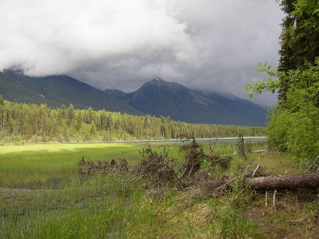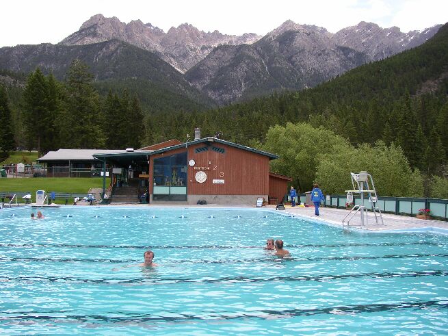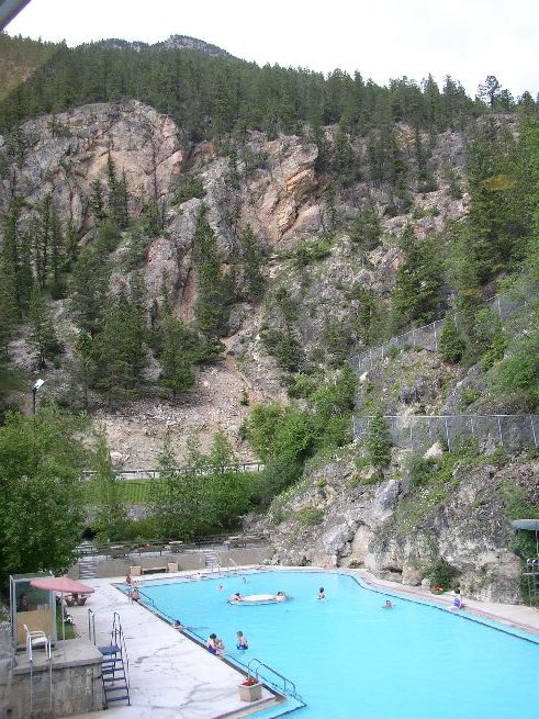 Die gestrige Entscheidung über die Wegstrecke bedeutet auch, dass wir für die restlichen Tage flexibel sind. Was wir irgendwo verbummeln, können wir locker wieder aufholen. Wir erreichen jetzt den Westrand der Rocky Mountains und man sieht deutlich, dass hier in den letzten Tagen das Wetter nicht besonders gut gewesen sein kann. Frisch gefallener Schnee leuchtet auf den Bergen. Auch heute ist es recht durchwachsen, immer mal wieder ein Regenschauer. Eigentlich das richtige Wetter, um endlich mal ein Thermalbad aufzusuchen. Wir hätten schon ein paar mal die Chance gehabt, aber aus irgendwelchen Gründen hat es nie gepasst.