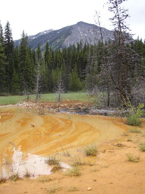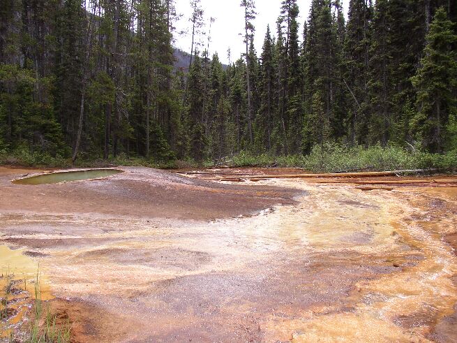 Heute wollen wir noch einige schöne Spaziergänge und Wanderungen im Kootenay NP machen, aber bei näherer Betrachtung bleibt davon nicht viel übrig. Der Marble Canyon ist wegen des Waldbrands 2003 gesperrt, die Wanderung am Stanley Creek zum gleichnamigen Gletscher ist zu lang, aussdem hängen die Wolken recht tief. Da bleiben eigentlich nur die heiligen Stätten der Indianer übrig.
