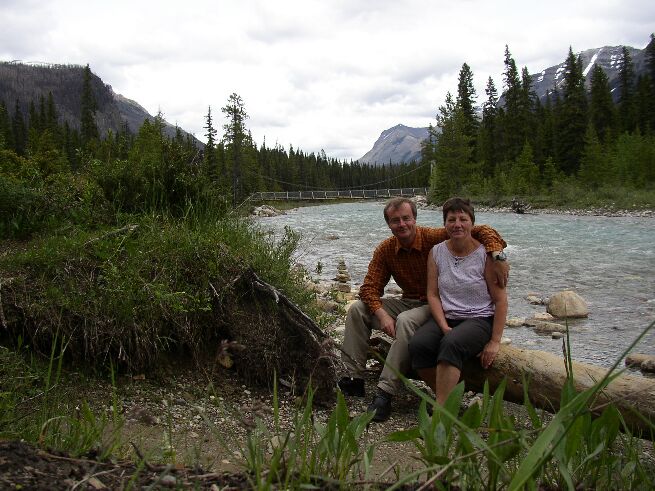 mit Blick auf den Bow River. Und der wird sofort an der Rezeption angemeldet. Dann können wir den schönen Abend geniessen. Kaum zu glauben, dass es vorgestern in Calgary ein schweres Unwetter gab und die halbe Stadt unter Wasser stand.. Das wissen wir aus der Vortagszeitung, die an der Rezeption zum Feueranmachen ausliegt.