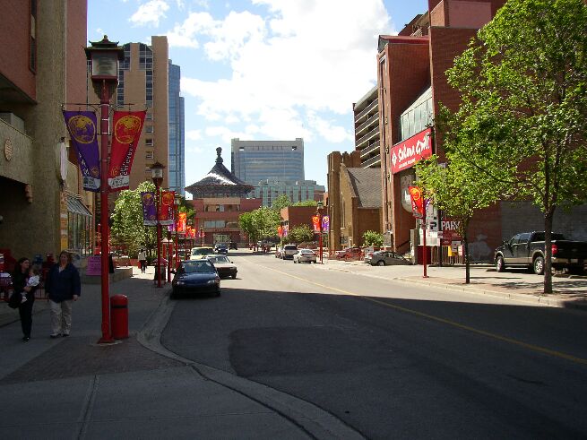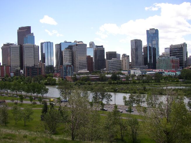 Dazwischen die weite Prärie mit dem Stoney Indian Reserve. Gerne hätten wir auch wieder eine Nacht bei den Indianern übernachtet. Sie sollen hier einen Campground betreiben. Aber an der Straße gibt es keine Hinweise darauf. So läuft es doch auf einen Campingplatz an der Peripherie Calgarys hinaus. Von Nordwesten kommend, fahren wir gleich den am günstigsten gelegenen an: Symon's Valley RV Park. Er ist genauso, wie wir es erwartet haben: von Idylle keine Spur, im wesentlichen von Wanderarbeitern belegt. Aber für die letzte Nacht haben wir keine großen Ansprüche. Das einzige Kriterium ist, dass wir morgen früh eine schnelle und problemlose Anfahrt zur Vermietstation haben. Deshalb stören wir auch die nette Dame am Empfang bei ihrer Mittagspause und buchen ein. Nachdem wir uns selbst gestärkt haben, ist noch der ganze Nachmittag Zeit, Calgary zu erkunden. Und jetzt machen wir den größten Fehler der Reise. Obwohl wir gut über den öffentlichen Nahverkehr in Calgary informiert sind und es kein Problem gewesen wäre, einen Park&Ride Platz anzusteuern und mit dem Bus nach Downtown zu fahren, brausen wir mit dem RV direkt ins Zentrum. Das kostet uns über eine Stunde Parkplatzsuche. Schließlich stellen wir uns in eine 2-Stunden Parkzone etwas von der City entfernt, natürlich ohne Parkscheibe. Da muss ein Zettel reichen. Vorsichtshalber sollten wir aber pünktlich zurück sein.