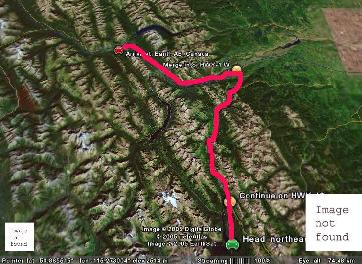 Von Lower lake CG über Kananaskis Lakes Trail, Highway 40 und Trans Canada Highway nach Banff, Tunnel Mountain Trailer and RV Park