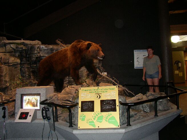 Gegen Mittag fädeln wir uns in den heute stärkeren Wochenendverkehr auf dem TCH Richtung Banff ein. Aber schon wenige Kilometer weiter, am Alberta Visitor Center in Canmore, machen wir unsere Mittagsrast. Hier können wir auch einen Grundvorrat an Prospekten abfassen.