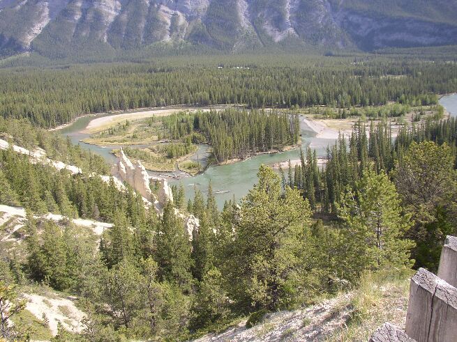 Im Tal unterhalb unseres Logenplatzes fliesst der Bow River und er hat diese Landschaft geformt.