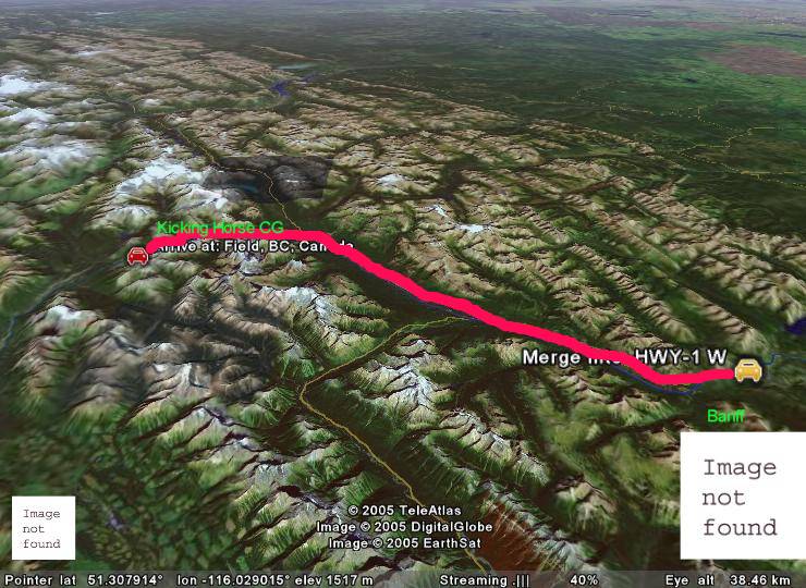Von Banff, Tunnel Mountain RV Park über Bow Valley Parkway (Highway 1A), und Trans Canada Highway nach Kicking Horse CG