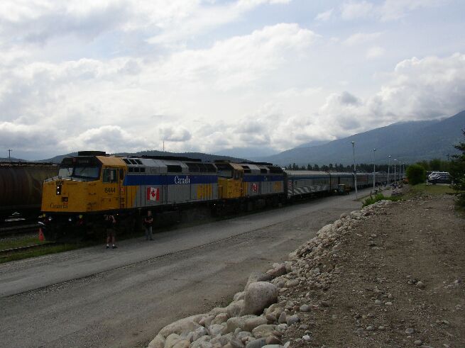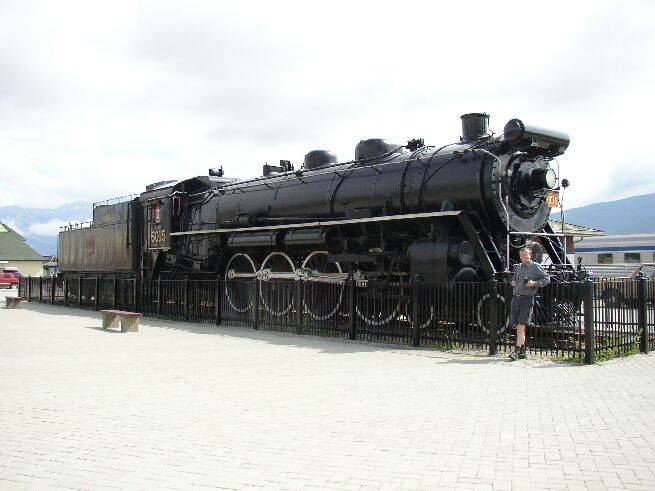 aber sie erinnert daran, dass Jasper schon seit dem Bau der großen kanadischen Pazifiklinien eine wichtige Eisenbahnstation ist. Ausserdem haben wir Glück, denn gerade heute passiert der dreimal wöchentlich verkehrende ViaRail Express "The Canadian" um die Mittagszeit Jasper.