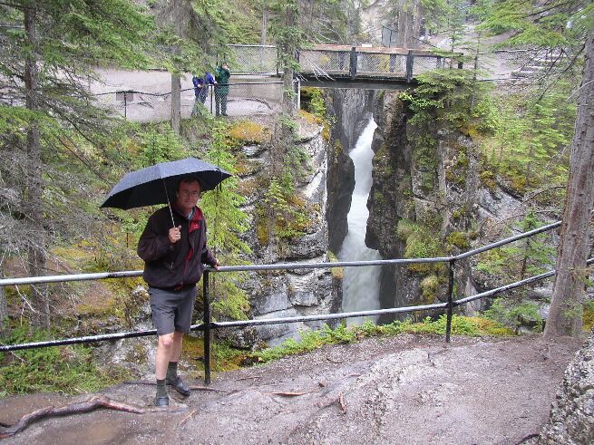 Auf dem Rückweg halten wir der Vollstängigkeit halber noch am Maligne Canyon an. Aber der Regen ist stärker geworden. Das bedeutet auch, dass wir keine großen Aktivitäten wegen der Campingplatzsuche mehr starten. Wir steuern einfach den nächstgelegenen an. Er ist das Gegenteil vom Vortag.