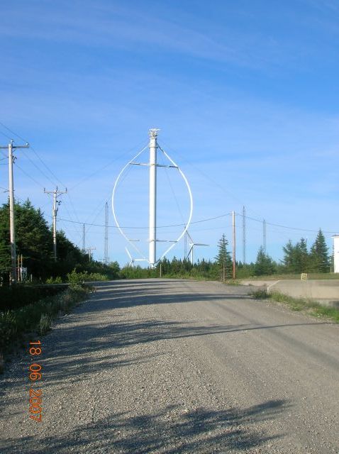 Den nächsten Leuchtturm verpassen wir glatt, weil wir unsere ganze Aufmerksamkeit auf dieses vertikale Windrad richten. Da kein Wind ist, dreht es sich leider nicht.