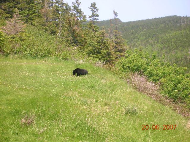 Schwarzbär am Wegesrand. Glücklicherweise sehen wir ihn schon