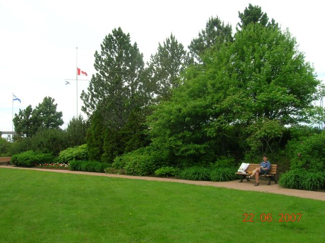 Mittagspause im Park des Welcome Centers von Nova Scotia Hier weht