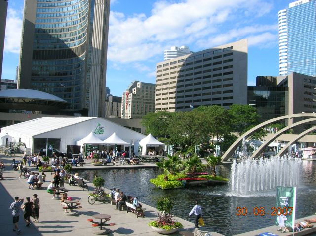 vor dem Eaton Center geht es wiederum recht beschaulich zu, obwohl ein Jazzfestival einlädt. Das richtige