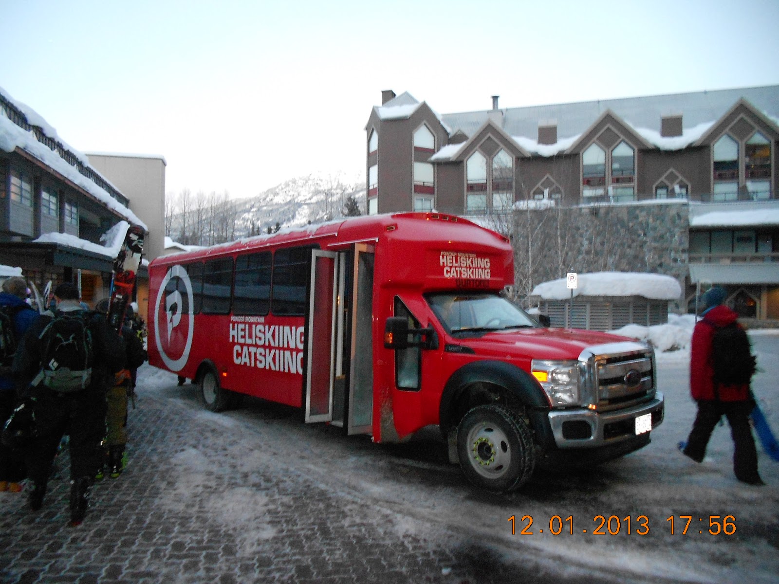 wurden die Ski in Pistenraupen mit Busaufsatz verladen, währenddessen konnte