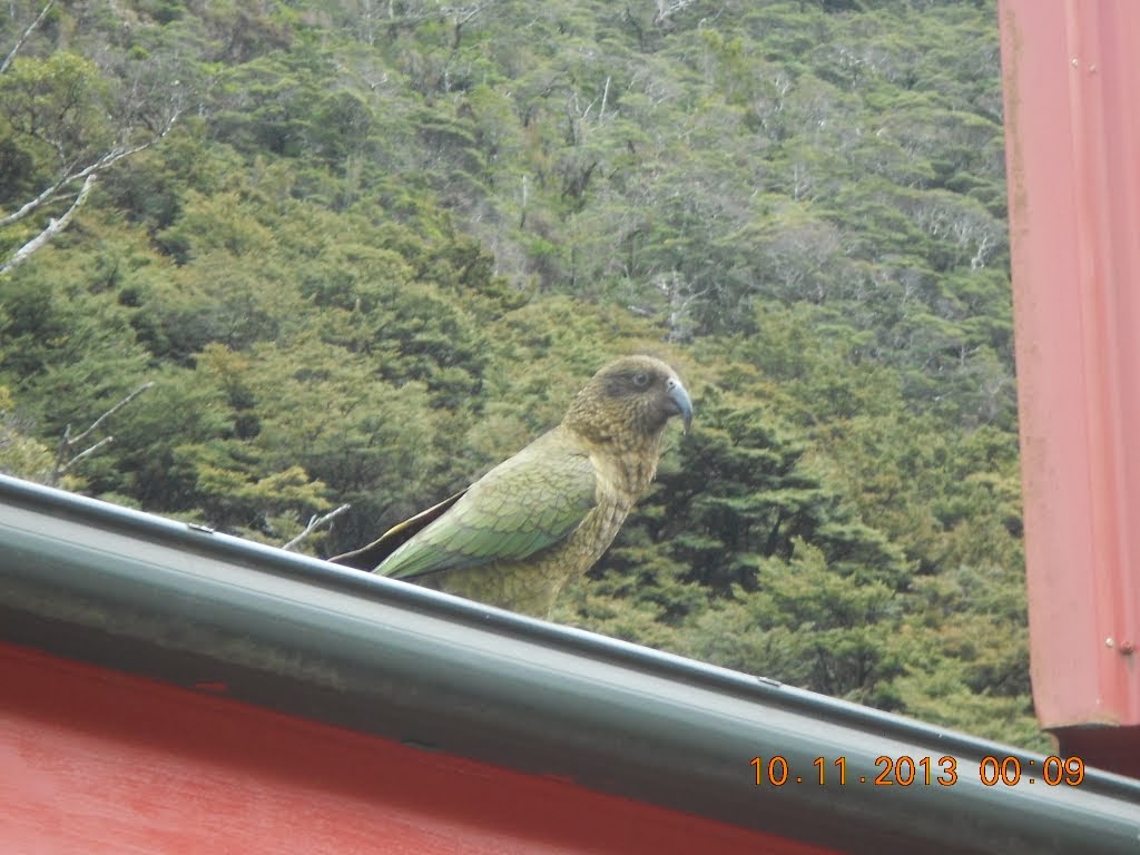 Auch danach geht es weiter steil bergab, spektakulär an der Felswand entlang. Auch am Sonntag sind große LKW unterwegs, in einigen Kurven geht es sehr eng zu. Der Kea hat es da leichter, ist ein ganz toller Flieger.