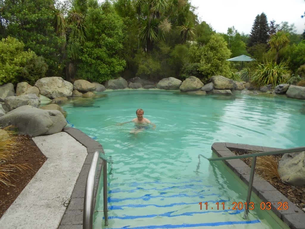 Die Fahrt über den Lewis Pass verlief unspektakulär, fast schon langweilig. Der Pass als solcher fällt garnicht auf, die Landschaft ist zwar lieblich, aber es gibt kaum Möglichkeiten, anzuhalten und wirklich schöne Bilder einzufangen. Deshalb steuern wir am Nachmittag den Ort Hanmer Spring an, in dessen Thermalbad wir es uns gutgehen lassen.