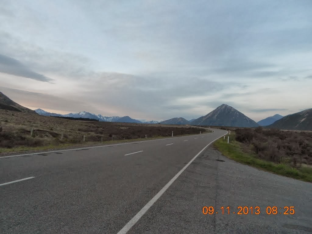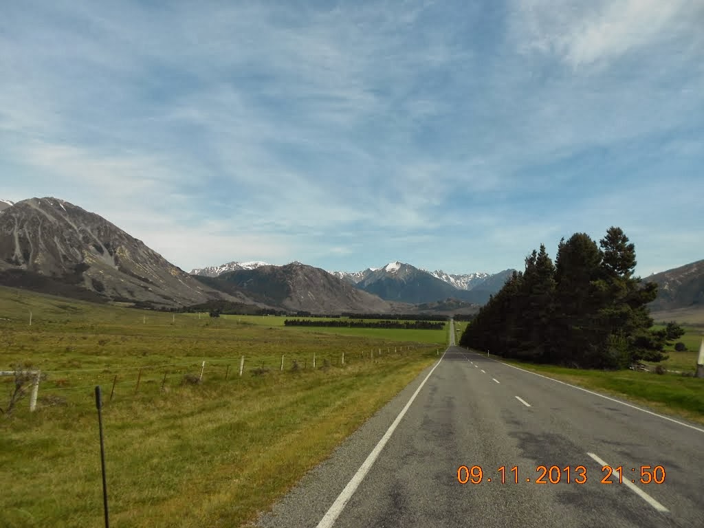 Tag 33, 9.11.2013, Vom Mt. Cook Nationalpark, SH8, Fairlie, SH79, Geraldine, SH72, SH77. Rakaia Gorge, SH73 zum Lake Pearson, 284 km :
