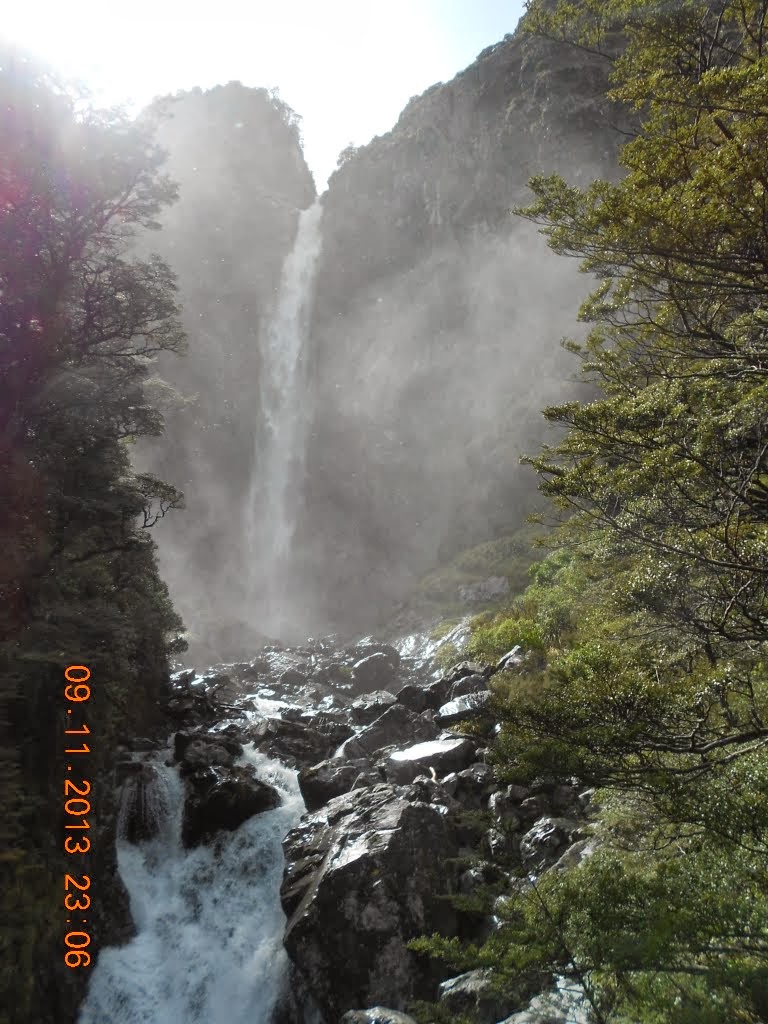 schieben allerdings kurz vor Passhöhe noch eine Wanderung zum bis hierher imposantesten Wasserfall Neuseelands ein : Devil's Punch Bowl.