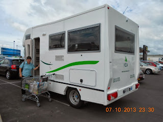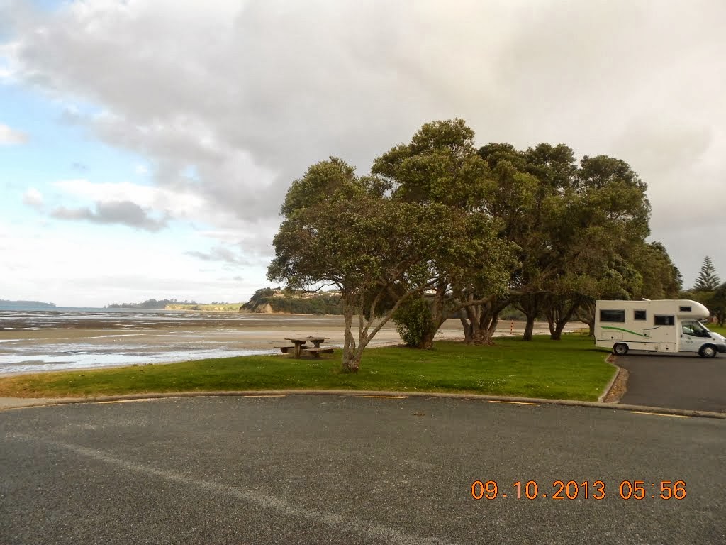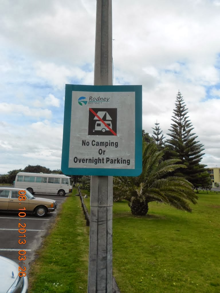 Tag 1, 8.10.2013 von Auckland, SH20, SH1, Orewa nach Hatfield Bay, 80 km : Fahrzeugübernahme, Großeinkauf, in Auckland verfahren, Strandspaziergang in Orewa Beach.