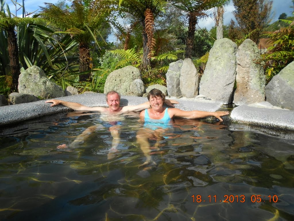 Ab 6 Uhr kann man in unserem fast privaten Thermalbad planschen. Ganz so früh sind wir nicht drin, aber etwas früher als gewöhnlich stehen wir schon auf, so dass wir bis zur Abfahrt um 10 Uhr alle 6 Becken noch einmal durchprobiert haben. Dann geht es auf die Coromandel-Halbinsel. Leider können wir die schönen Landschaftseindrücke nicht richtig aufnehmen, weil die Straße wieder recht schwierig zu fahren ist. Die Mittagsrast machen wir in Katikati und neben dem schönen Namen hat dieses Örtchen jede Menge Kiwi-Plantagen zu bieten. Wir haben einen Blick auf die kommende Ernte gewagt.