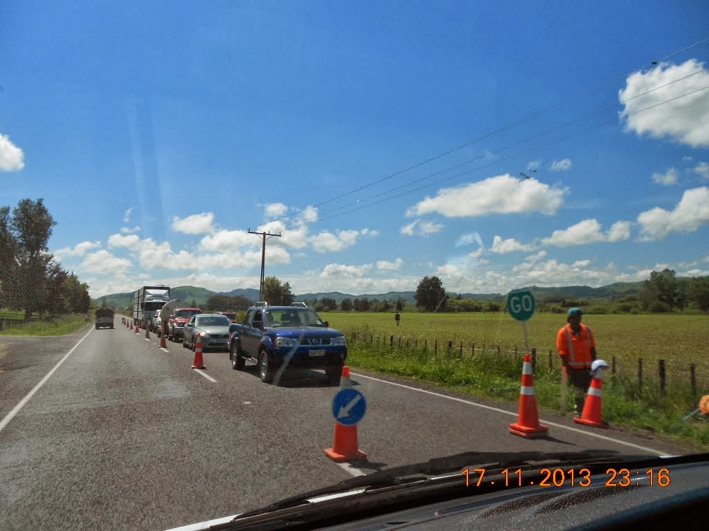 Dazu müssen wir die Nordinsel noch einmal von West nach Ost queren. Leider wieder eine Fahrt über kurvige und holprige Straßen, die noch durch jede Menge Baustellen gewürzt wird.
