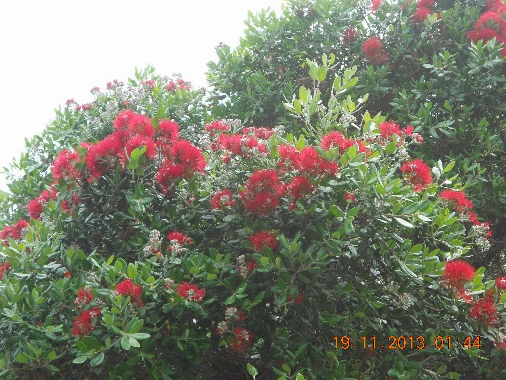 Auch die neuseeländischen Weihnachtsbäume fangen in dieser klimatisch bevorzugten Gegend zu blühen an.