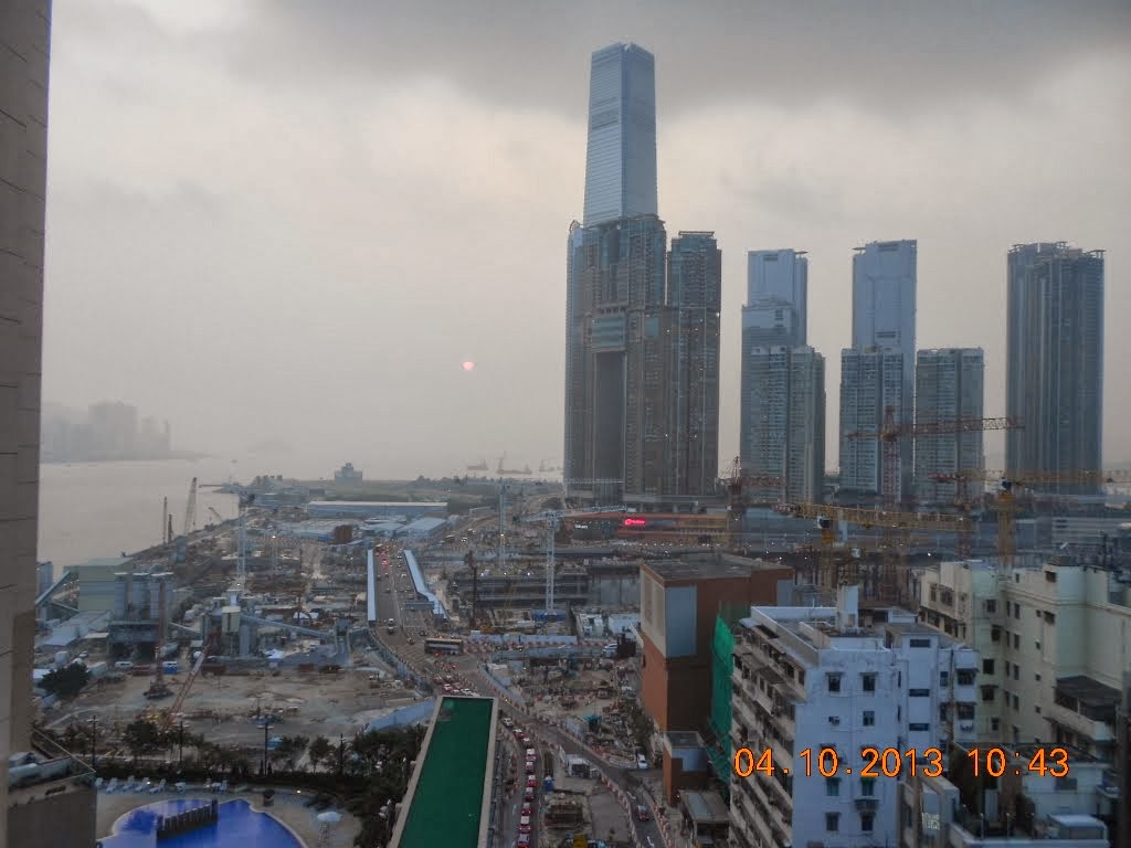Unser Zimmer im 14. Stock des Hotels B.P. International gestattet einen schönen Ausblick auf das höchste Gebäude von Kongkong und den Blick auf eine riesige Baustelle, die das gesamte Areal zwischen den Metrostationen Kowloon und Austin Road komplett neu gestaltet.