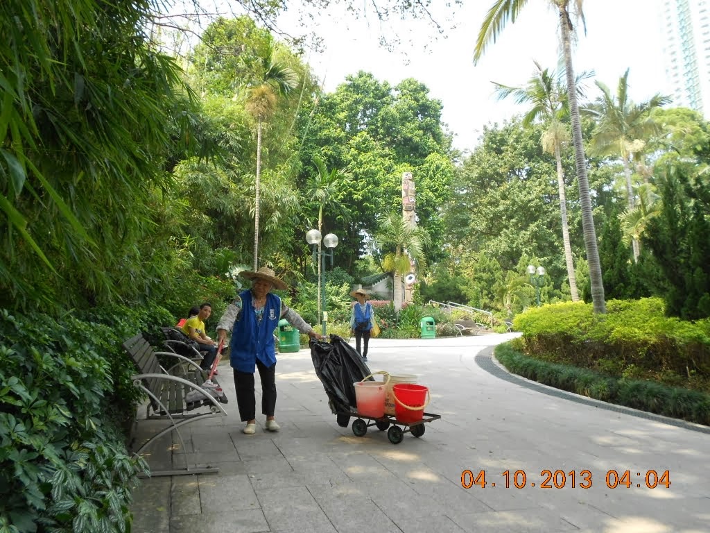 Nett sind die vielen kleinen Parks. Aber in Stoßzeiten auch gut besucht. Bzw.: kaum hat man sich auf eine Bank gesetzt, kommt jemand vorbei und will sie putzen.