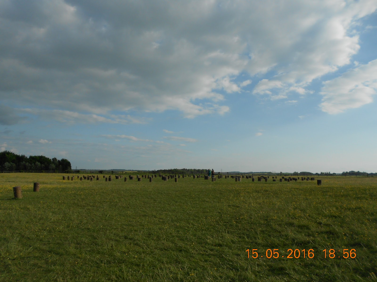Am Abend schlugen wir unser Lager auf dem Parkplatz von "Woodhenge" auf. Das ist der kleine Bruder von "Stonehenge". Die bis zu 9 m hohen Holzbalken sind