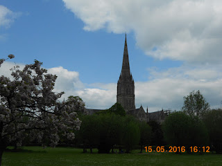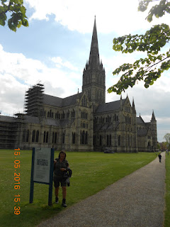 Salisbury ein. Hier sollte man die Kathedrale gesehen haben, ein gewaltiger Bau mit dem höchsten Kirchturm Englands. Und ringsherum ganz entspannt eine