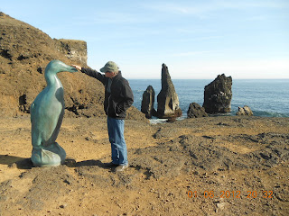 Am Abend stehen wir an einem pitturesken Steilufter mit einigen Klippen, an