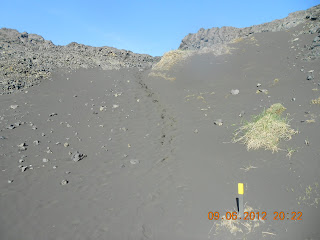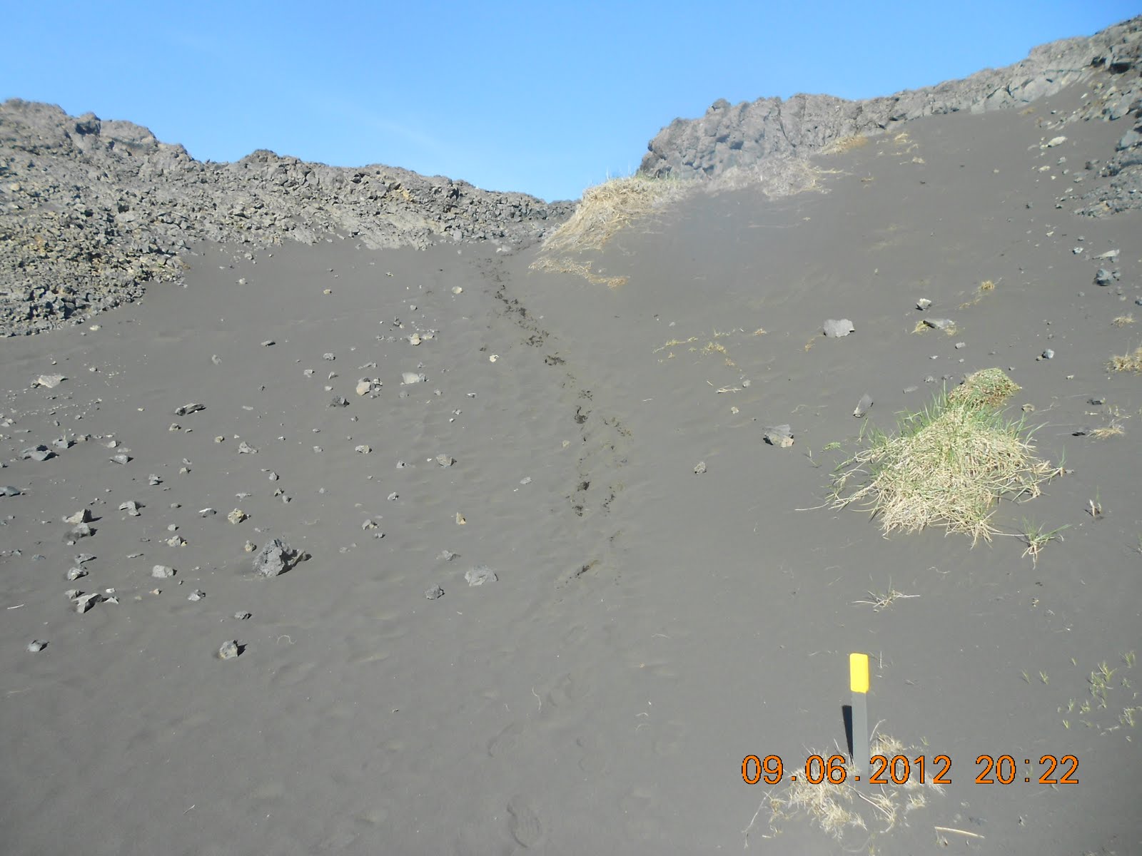 Lavasand, Lavageröll und Lavafelsen machen das Vorwärtskommen schwierig.