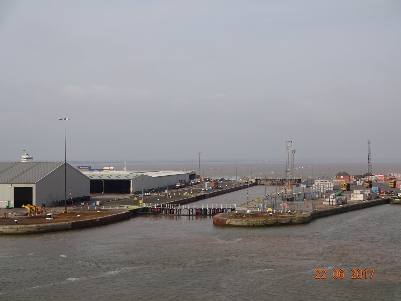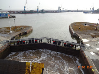 Nach einer ruhigen Fährüberfahrt gab es bei der Ankunft eine Besonderheit. Das Schiff musste durch eine Schleuse zwischen offener See und Hafen und zwar