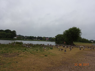 Einkaufen und Kaffeepause in Hornsea, der Parkplatz dort an einem kleinen Binnensee war ab 16 Uhr nur noch für die Gänse reserviert,